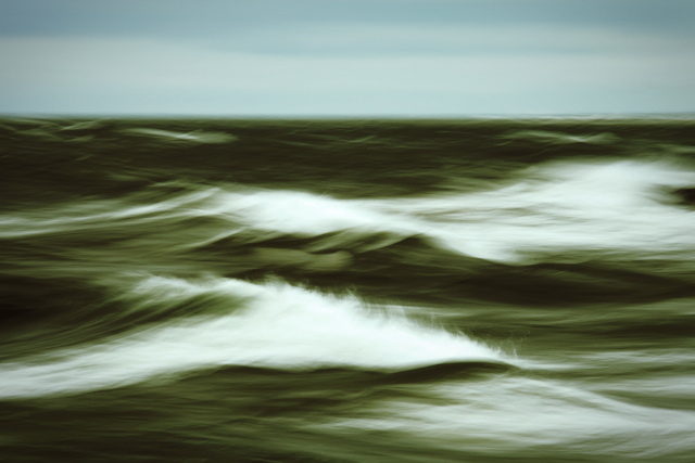 Stürmische Ostseewellen rollen mit weißem Schaumkränzen gegen das Ufer, den Strand. Auf einem Steg stehend spürt man die rohe Naturgewalt, die von dieser See ausgeht. Vom Wind gepeitscht klatschen die Wellen lautstark immer und immer wieder gegen den Steg und katapultieren das salzige Meerwasser hoch hinaus. Feuchtigkeit mit einem salzigen Beigeschmack liegt in der Luft. Die Dynamik, Stimmung und raue Aura des Meeres fasste ich in dieser Photographie.